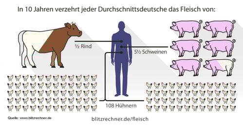 Fleisch-Rechner: Verbrauch an Fleisch, Anzahl von Tierleben und